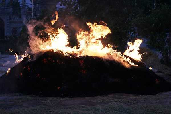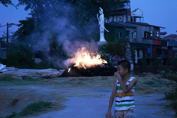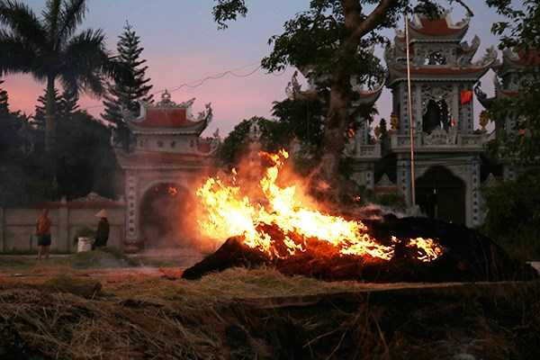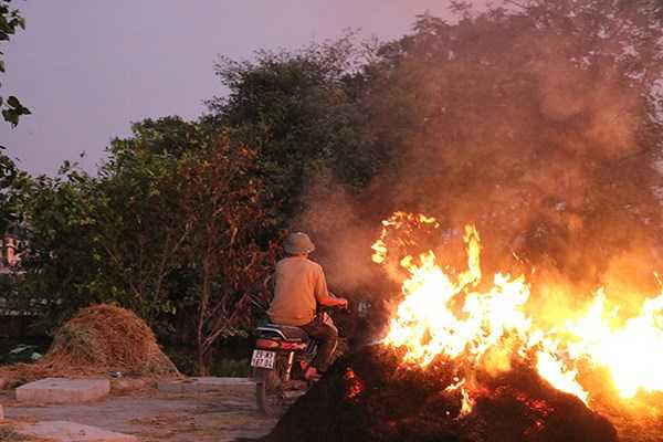 Hầu hết những đống rơm to thường được đốt vào buổi chiều tối, cháy âm ỉ suốt đêm.