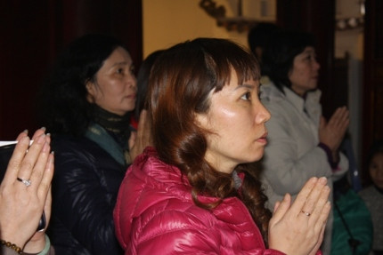 | Thành kính trước cửa Phật. Ảnh: Tuấn Ngọc - Trang Anh |