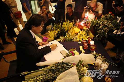 (VTC News) - Chiều 15/11, Đại sứ quán Pháp ở Hà Nội đã mở cửa tiếp đón mọi người vào đặt vòng hoa và viết lời chia buồn tới những nạn nhân vụ khủng bố ở Paris.