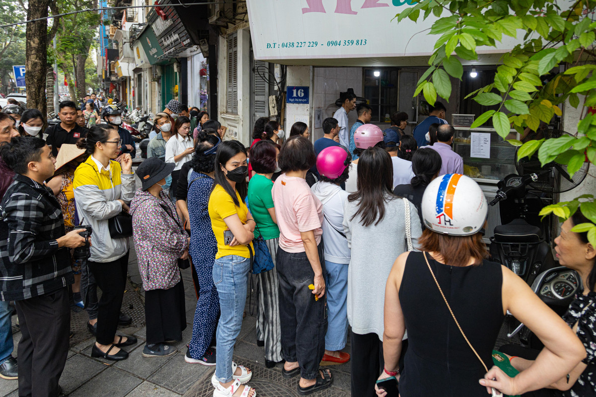 Một vị khách cho biết, từ 6h sáng cô đã đi mua bánh, cứ ngỡ sẽ thoát cảnh phải xếp hàng chờ. Nhưng không ngờ đã có rất nhiều người đến chờ từ trước và cô đành chấp nhận xếp hàng gần 2 tiếng đồng hồ mới mua xong.