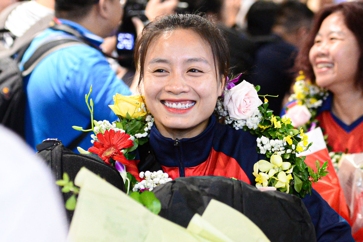 Những nụ cuời rạng rỡ của các tuyển thủ nữ trong ngày trở về sau khi giành tấm HCV thứ 4 liên tiếp.