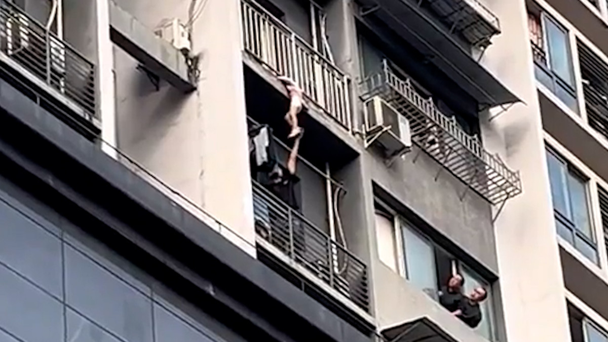 Phát hiện bé gái treo lơ lửng ở ban công, người đàn ông hàng xóm dũng cảm trèo từ cửa sổ bên dưới và đưa tay ra giữ chân, giúp bé thoát nạn.