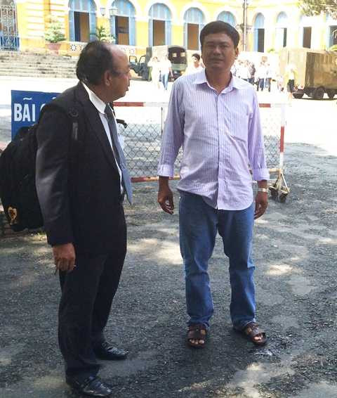 | Bị cáo Nguyễn Tuyến Dũng (phải) được cho tại ngoại ngay phiên tòa phúc thẩm. Ảnh: Tử Long |