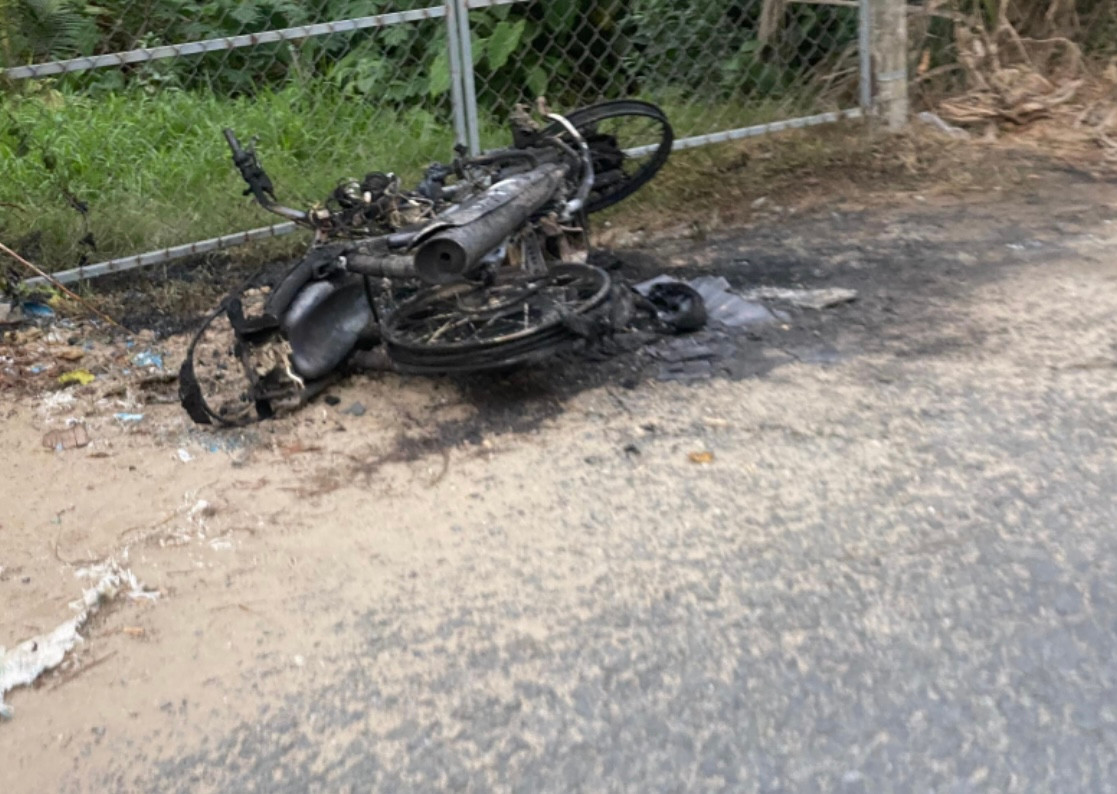 Tại hiện trường, chiếc xe máy bị ngọn lửa thiêu cháy trơ khung. Qua xác minh, người tử vong là Lê Tấn Thành (SN 1965, ngụ xã Mỹ Hòa). Đến sáng 12/5, ông Thành được xác định đã tử vong.