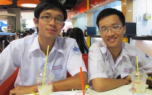 | Hồ Quốc Đăng Hưng (trái) và Phạm Tuấn Huy, hai thí sinh miền Nam, trước ngày lên đường ra Hà Nội tập trung để đi thi IMO 2014. |