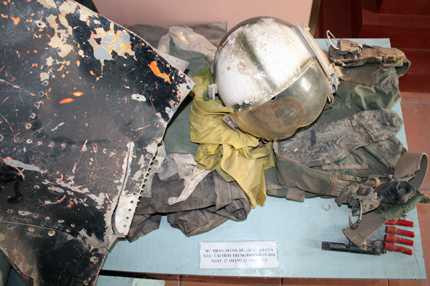 | Mũ, phao, manh, dù, quần áo của giặc lái Mỹ bị bị Tiểu đoàn tên lửa 72 bắn rơi ngày 27/12/1972 - Ảnh Minh Khang |