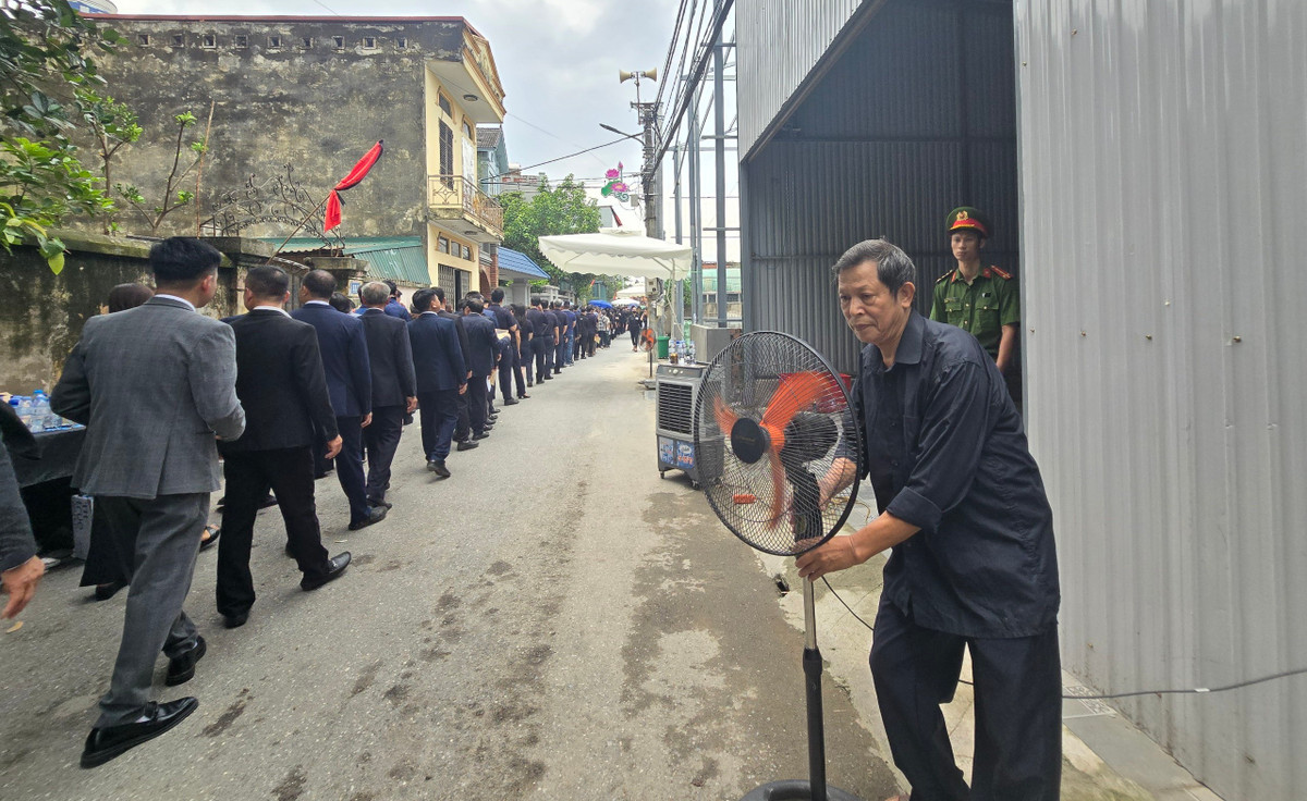 Sáng sớm 25/7, hàng nghìn lượt khách đã ghé thăm làng Lại Đà, xã Đông Hội, huyện Đông Anh, Hà Nội. Nhà chị Ngô Thị Thuần ở đối diện nhà văn hóa, nơi tổ chức viếng Tổng Bí thư Nguyễn Phú Trọng nên không ít người ghé lại nghỉ chân. Chị mở rộng cửa, bày sẵn bàn ghế, quạt cây, nước mát. Người tới càng lúc càng đông, chị vui lòng vì có thể giúp họ đỡ mệt mỏi, coi đây là việc nên làm để tiếp khách đến làng.