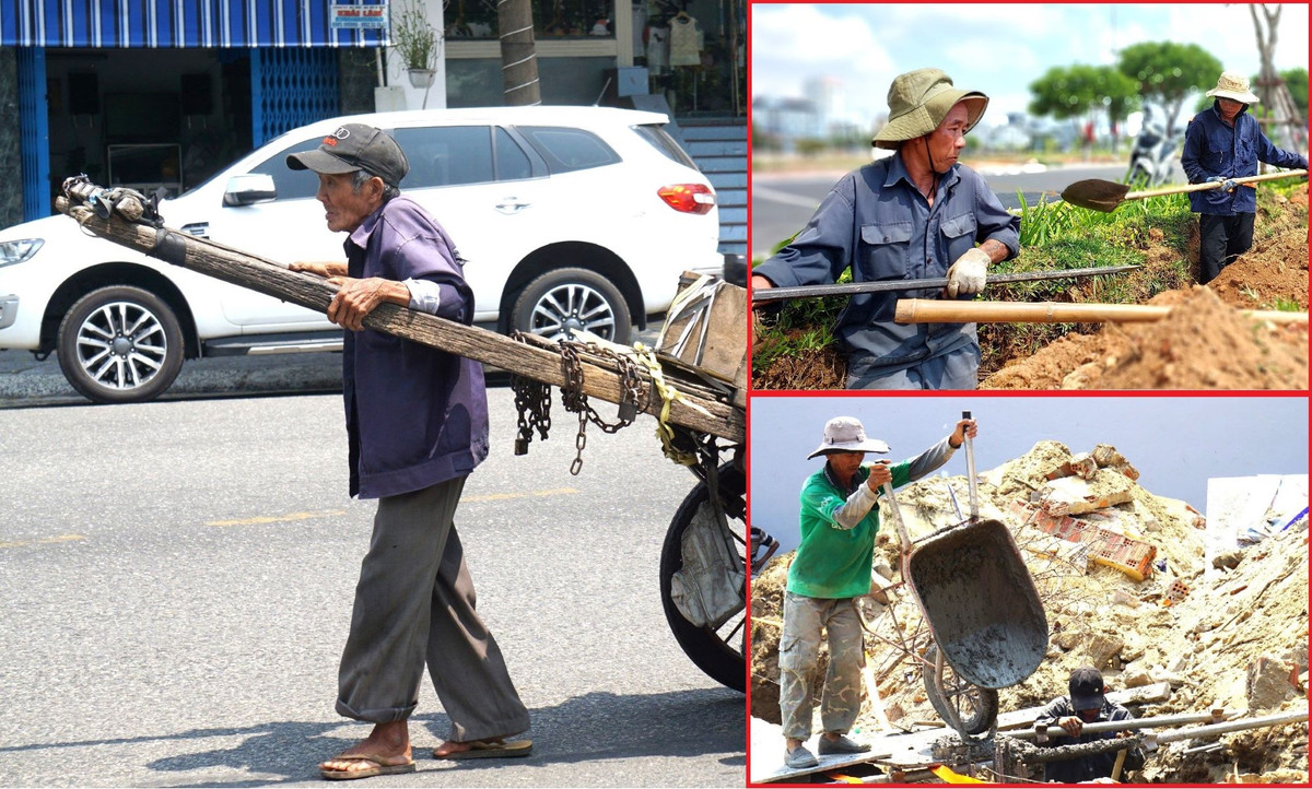 Giữa nắng nóng hầm hập, nhiều công nhân, người lao động vẫn phải phơi mình làm việc kiếm sống.