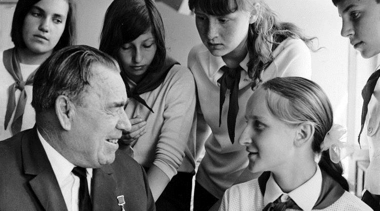 Thiếu tá Pyotr Gavrilov gặp lại các đồng đội cũ cùng chiến đấu tại pháo đài Brest năm 1956, từ trái qua phải: Aleksandr Ivanovich Semenenko, Trợ lý tham mưu Trung đoàn bộ binh số 44; Thượng úy Nikolai Ivanovich Zorykov, Chủ nhiệm vận tải và hậu cần Trung đoàn bộ binh số 44 và Thiếu tá Pyotr Mikhailovich Gavrilov, Trung đoàn trưởng Trung đoàn bộ binh số 44.