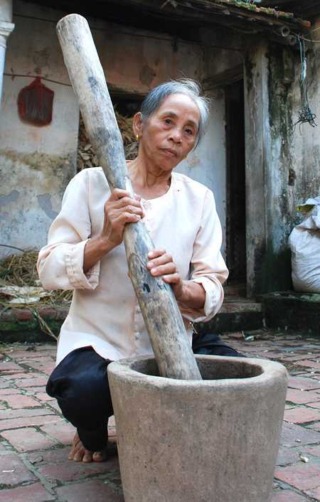 Bà Thiệp đang giã thuốc cứu người... Đọc thêm tại: http://nongnghiep.vn/nguoi-lo-cho-thien-ha-meo-mom-post148376.html | NongNghiep.vn Bà Thiệp giã thuốc cứu người |