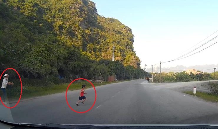 Người phụ nữ bất cẩn để bé trai lao sang đường như tên bắn, suýt chút nữa bị ô tô gắn camera hành trình đâm trúng, sự việc xảy ra vào khoảng 7h15 sáng 27/5 tại thị trấn Ba Sao, huyện Kim Bảng, Hà Nam.