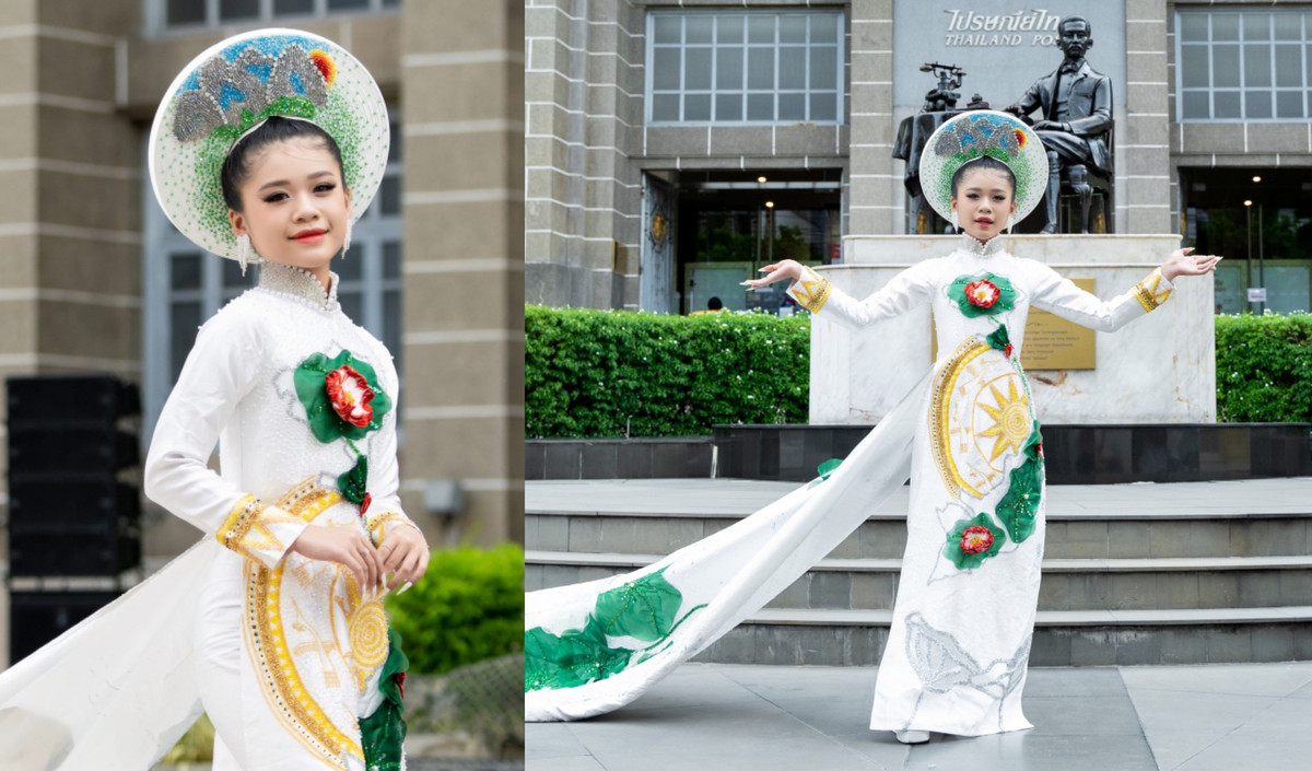 Katherine Minh Vy- người mẫu 12 tuổi diễn áo dài 250kg trên đất Thái