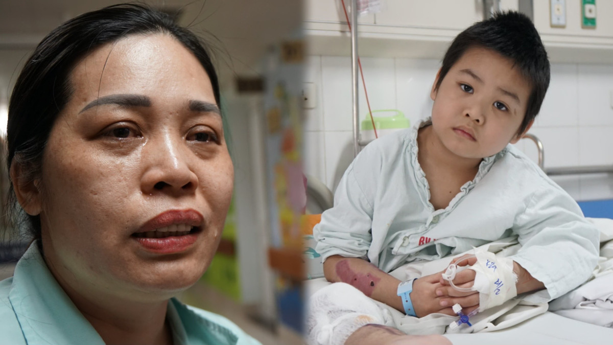Nghe bác sĩ thông báo con trai phải cắt bỏ chân, chị Dung ngất tại chỗ.