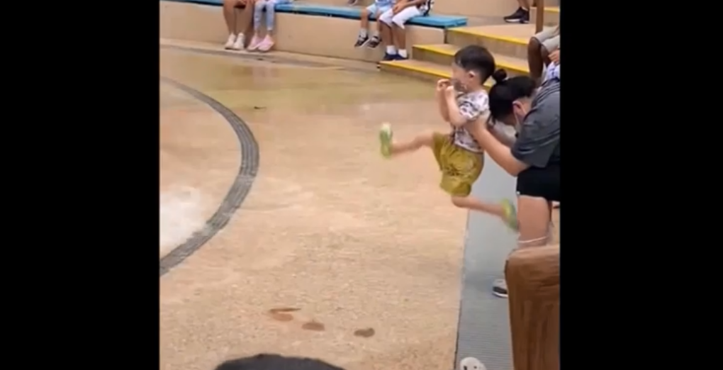'Người mẹ của năm' lấy con trai làm lá chắn cho khỏi ướt