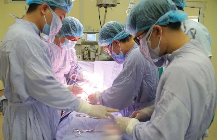 Hình ảnh người bệnh L. được ê kíp 2 bệnh viện phẫu thuật. (Ảnh: Thái Hà)
