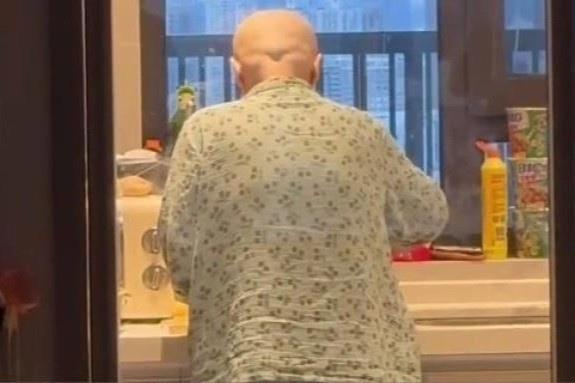 Đoạn video được đăng trên Douyin vào tuần trước bởi một người đàn ông họ Deng, đến từ Đại Liên (Trung Quốc). Người phụ nữ đầu trọc trong clip là mẹ của anh. Bà mặc đồ ngủ và tất bật nấu nướng trong nhà bếp.