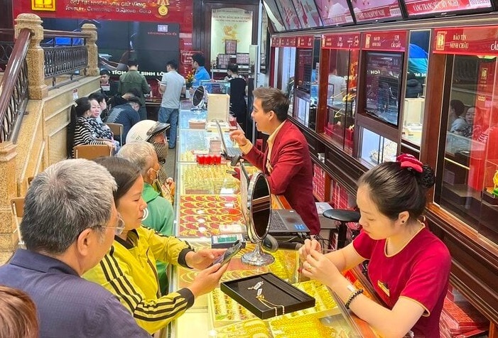 Nhiều cửa hàng vàng ở Hà Nội kín khách trong ngày 29/11. (Ảnh: Thành Lâm)