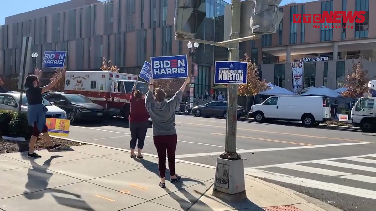 Nhiều người dân đã cầm biển hiệu mang tên Joe Biden, nhảy múa ăn mừng sau khi hàng loạt các hãng thông tấn lớn đưa tin ông sẽ là Tổng thống thứ 46 của nước Mỹ.