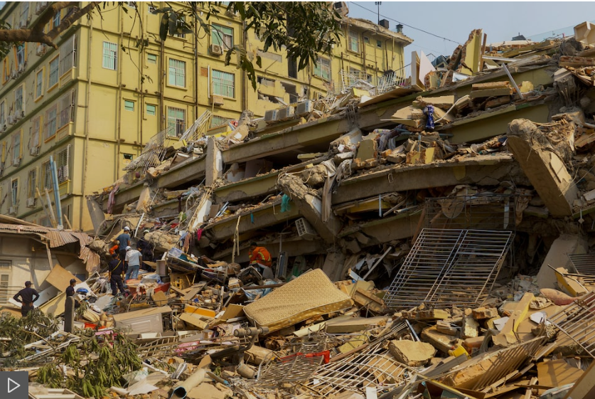 Ở Mandalay, thành phố lớn thứ hai Myanmar, những người sống sót dùng tay đào bới trong tuyệt vọng để tìm kiếm người mắc kẹt. Họ thiếu thiết bị cứu hộ hạng nặng và sự hỗ trợ từ chính quyền.
