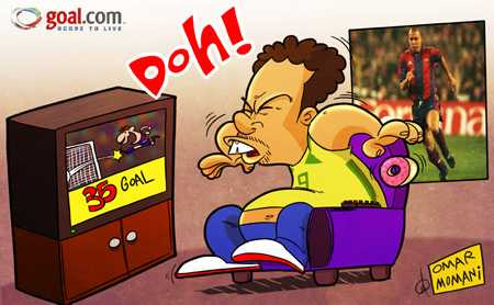 Lúc đó, không biết chân sút người Hà Lan có nhăn mặt như Ronaldo trong bức biếm họa mà tác giả Omar Momani đã sáng tác.