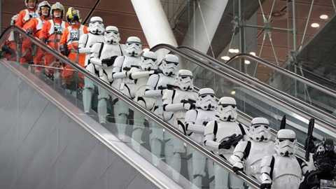 (VTC News) - Những hình ảnh của phi cơ chiến đấu không gian X-Wing cùng binh đoàn vũ trụ đi lại rầm rập tại sân bay quốc tế Changi - Singapore gây ngạc nhiên và thích thú cho tất cả hành khách đến và đi.