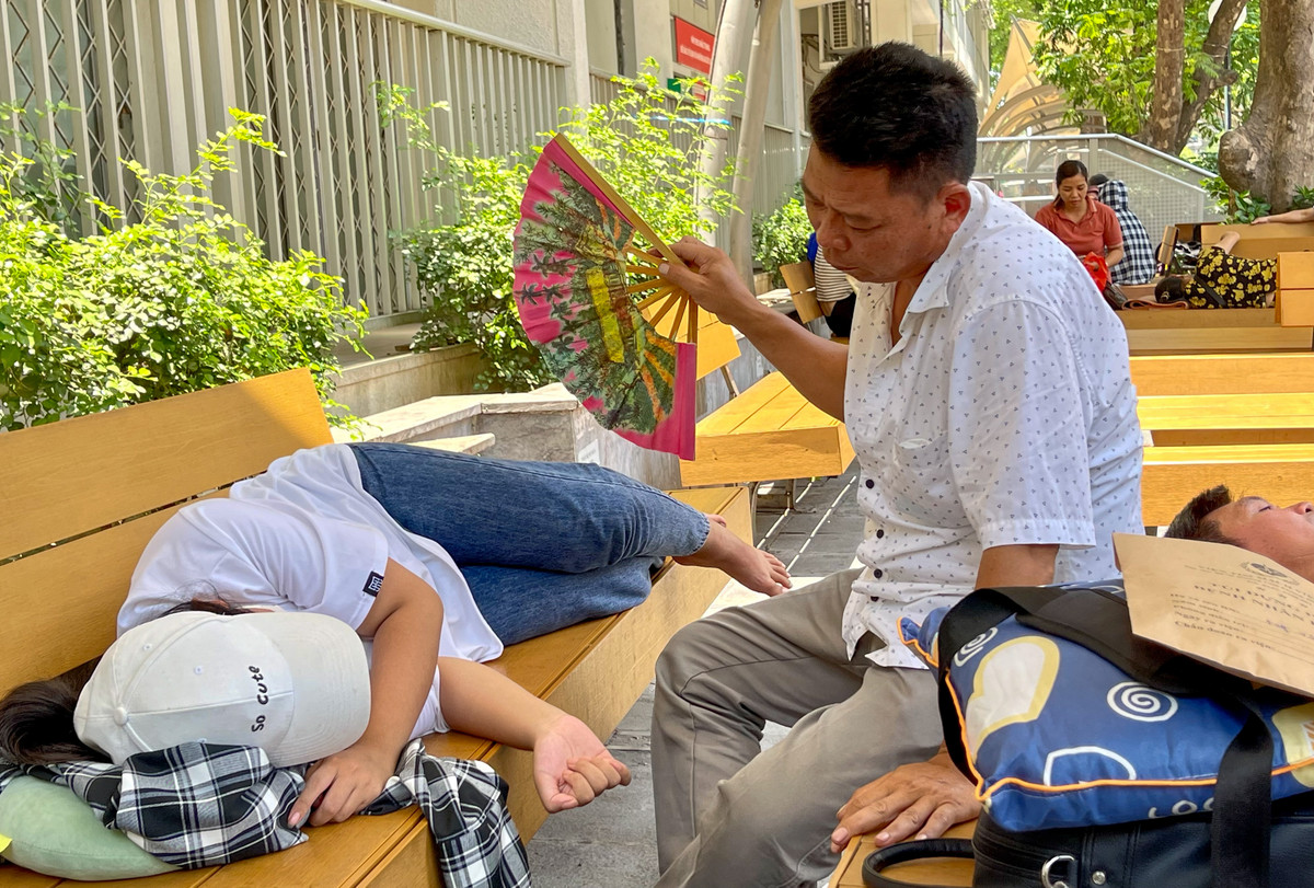 Người nhà bệnh nhân chật vật với nhiệt độ ngoài trời trên 50 độ C