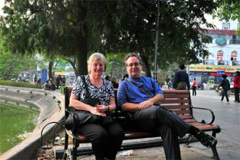 | Trudel (phải) và mẹ du lịch ra Hà Nội vào dịp Tết tây. Ảnh: Kim Ngân |