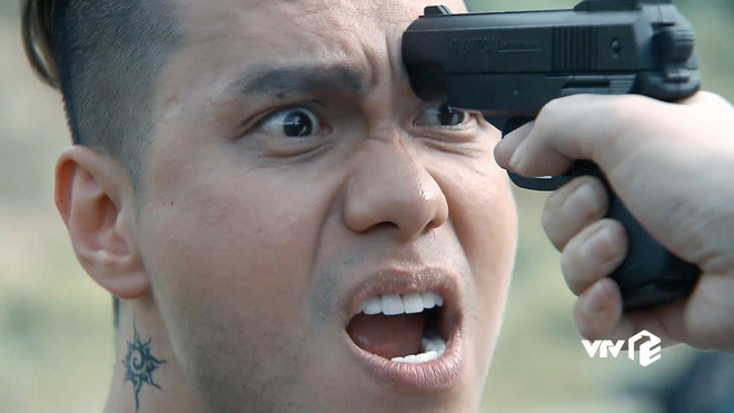 Ông trùm Phan Quân bị Long cá ngão chĩa súng vào đầu trong tập 1 phim "Người phán xử" tiền truyện.