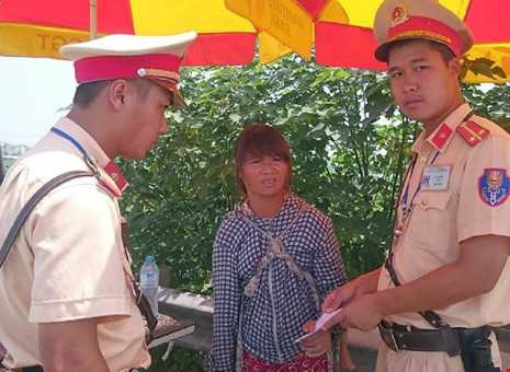 Lực lượng CSGT hỗ trợ chị Chung kinh phí đi đường.
