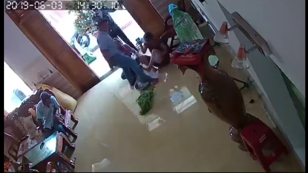 Bà Thoa bị hành hung ngay tại nhà. (Ảnh: Cắt từ clip)