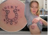 | Scarlett Johansson khoe hình xăm móng ngựa với dòng chữ Lucky You. |