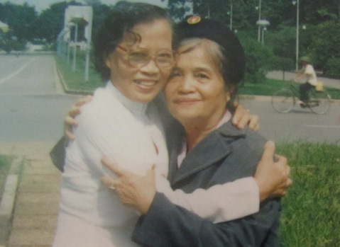 Bà Lê Thi (trái) và bà Đàm Thị Loan, hai người phụ nữ cùng nhau kéo cờ trong lễ độc lập ở quảng trường Ba Đình ngày 2/9/1945. (Ảnh: Tư liệu)
