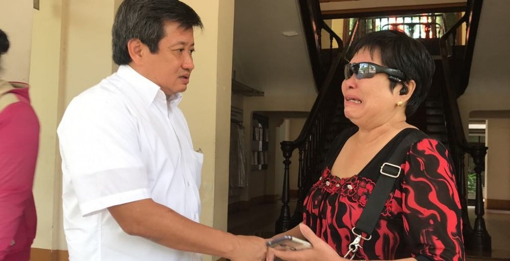 Thấy ông Hải, bà Cang liền chạy lại cầm tay, nước mắt nghẹn ngào không nói nên lời. Phải hơn 1 phút trấn tĩnh, bà Cang mới kể lại lý do đến tìm gặp ông Hải.