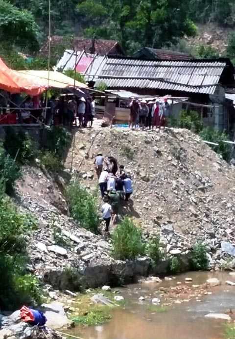 Cạnh đó không xa ở khu vực khe suối, một người phụ nữ lạ mặt đang ngất xỉu. Ngay sau đó, người dân vội vã đưa các nạn nhân đi cấp cứu tuy nhiên chị V. đã tử vong.