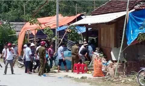 | Người dân bản Vẽ đổ về căn nhà chị V. sau khi nghe tiếng la hét thất thanh. Ai nấy rùng minh khi chứng kiến hiện trường vụ án mạng kinh hoàng. |