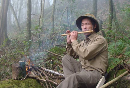 | Một mình trong rừng hoang, ông thường thổi sáo cho đỡ buồn |