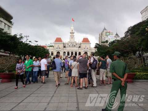 | Du khách nước ngoài đến chụp hình, tham quan tại khu vực trung tâm Sài Gòn. Ảnh: Huy Phan |