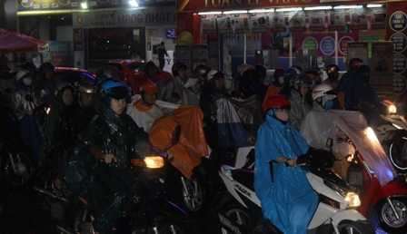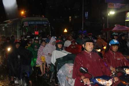 Đến hơn 20h tối cùng ngày, dòng người vẫn phải dầm mình trong mưa.