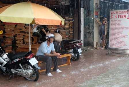 Người đàn ông này phải ngồi trú vì mưa quá lớn