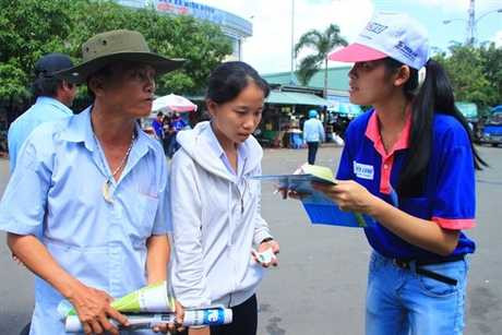 | Sinh viên tình nguyện tại chốt Bến xe Miền Đông (Q.Bình Thạnh) tư vấn cho phụ huynh, thí sinh. |