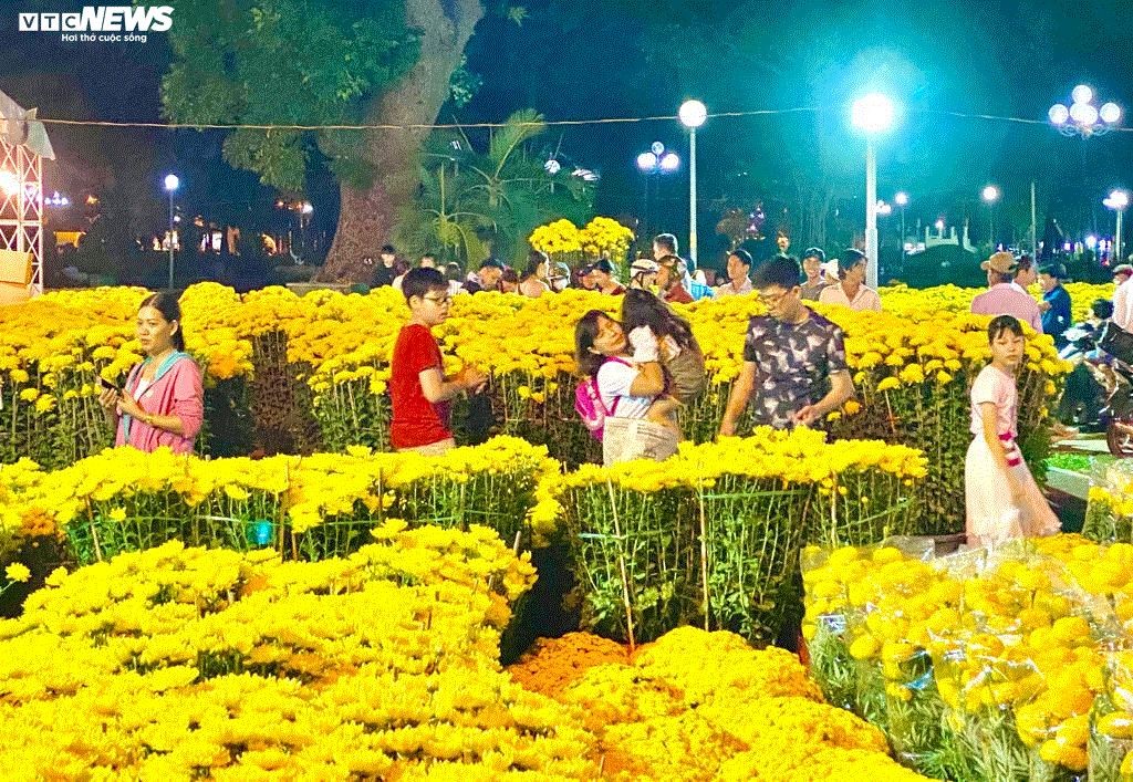 Theo ghi nhận của PV VTC News, vào 23h30 ngày 22/1 (tức 28 tháng Chạp), tại công viên Gia Định, hàng trăm người nối chân nhau đến tham quan, chụp ảnh và phần lớn là để tậu hoa chưng Tết.
