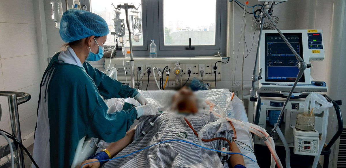 Bệnh nhân đang được điều trị tại Trung tâm Hồi sức tích cực - Bệnh viện Bạch Mai. (Ảnh: Thanh Hải)
