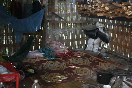 Tôi nhìn mênh mang vào cái “thế giới” của ông. Căn chòi thưng bằng nứa lồ ô lợp tôn vá víu được ông chia làm hai ngăn. Ngăn trong cắm một chiếc sạp gỗ buông màn tối om, ý chừng là nơi ngủ của ông. Gian ngoài làm bếp. Từ đây về tới làng Kuk dễ chừng phải đến 3 cây số.