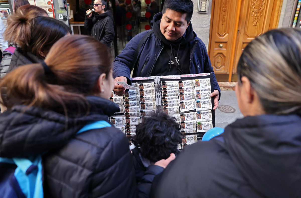 Ông Jose Moreno, 52 tuổi, xếp hàng mua được các tấm vé El Gordo cho gia đình mình. Jose sống ở Barcelona nhưng đang tận dụng chuyến đi đến Madrid để mua vé số tại Dona Manolia, cửa hàng được coi là may mắn nhất nước.