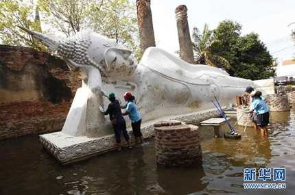 Người dân ở khu thành cổ Ayutthaya, miền trung Thái Lan đang tất bật dọn dẹp, chuẩn bị đón cuộc sống mới sau những ngày lụt lội.