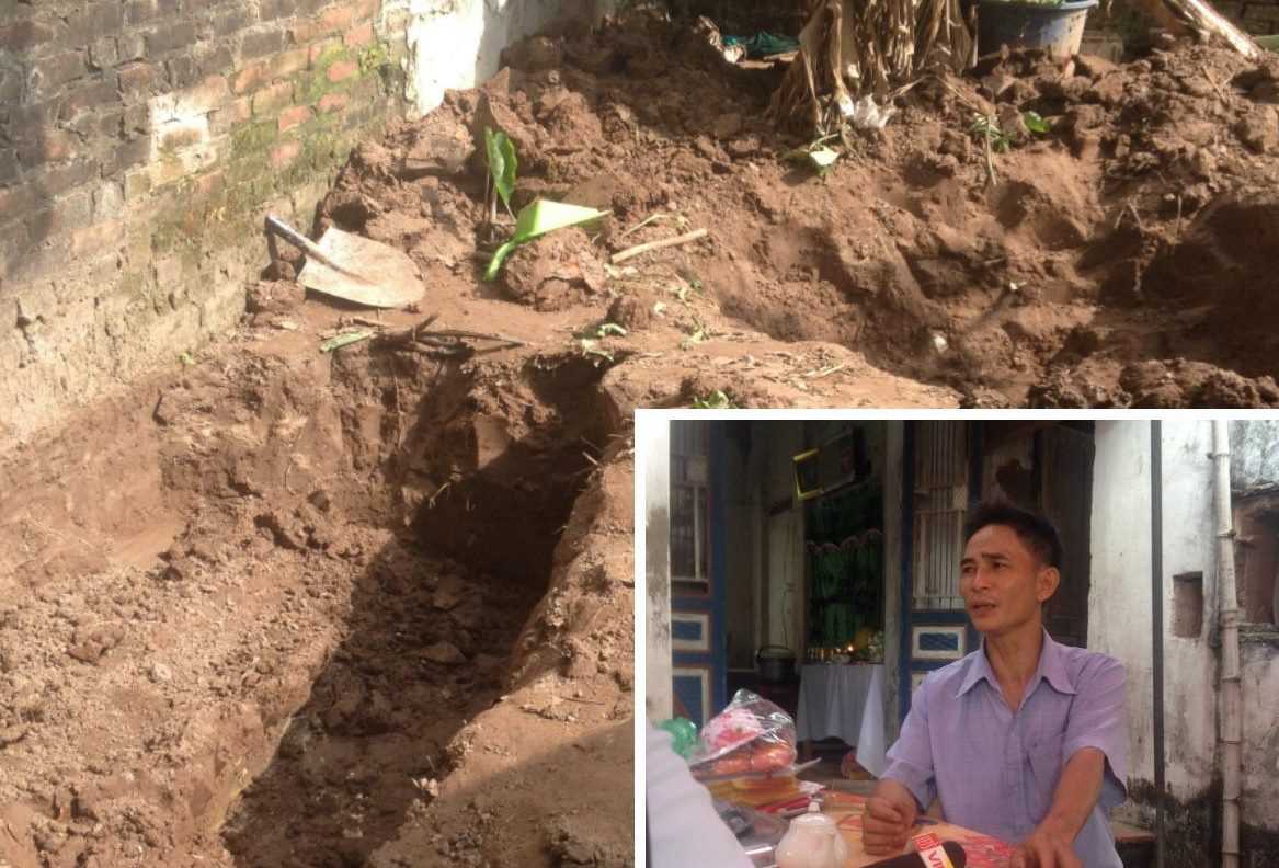 Nghi sự việc có liên quan đến cô cháu gái mất tích bây lâu nay, cả gia đình ông vội vã chạy ra hiện trường thì thấy công an đang tiến hành khám nghiệm, khai quật trong một góc vườn dưới hàng cây chuối.