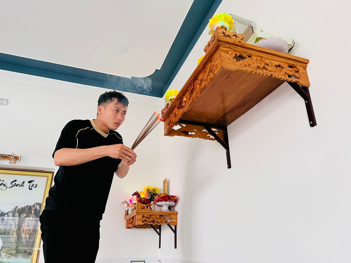 Thắp vội nén hương lên bàn thờ tổ tiên, anh Quang nghẹn ngào nói: “Tôi vỡ òa khi nghe tin cha được cứu. Cả nhà vẫn đang ngóng tin cha qua điện thoại".