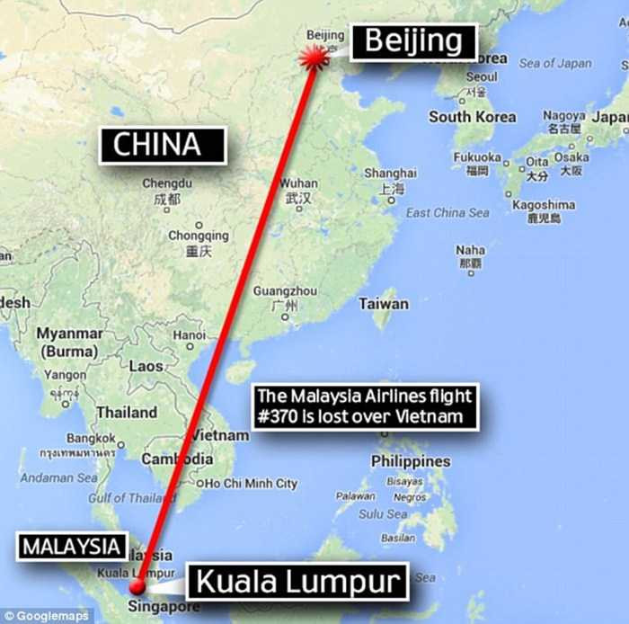 Đường bay của chiếc máy bay từ Kuala Lumpur đến Bắc Kinh, Trung Quốc