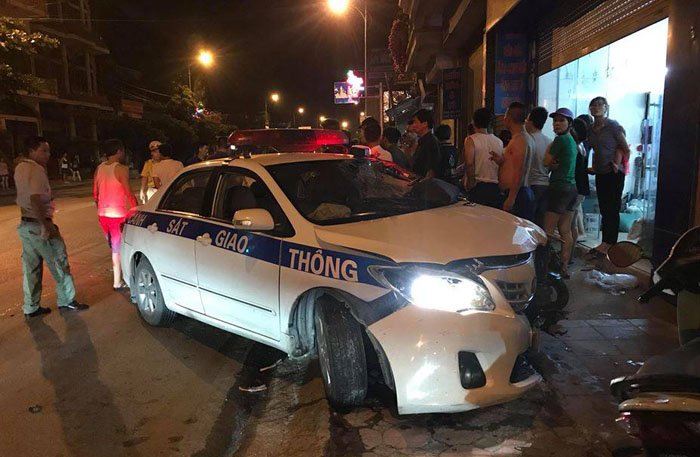 Xe ô tô của lực lượng CSGT do Trung úy Bùi Đức Trọng (SN 1991) cầm lái và Thượng úy Phạm Hùng Cường (ngồi bên ghế phụ), đều là cán bộ thuộc Tổ tuần tra kiểm soát giao thông số 1 - Phòng CSGT đường bộ, đường sắt - Công an tỉnh Quảng Ninh.