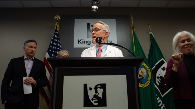 Bác sĩ Frank Riedo, giám đốc về kiểm soát nhiễm trùng tại Bệnh viện EvergreenHealth, trong cuộc họp báo ngày 29/2 năm 2020 tại Seattle, Washington. (Ảnh: Getty)